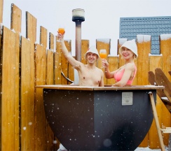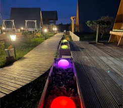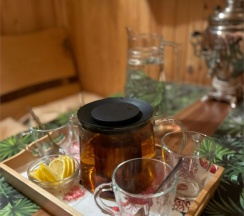 На территории 4 дома (лето, осень, зима, весна) у каждого своя мангальная зона(если нужна решетка или шампура-можно взять у админа) . Для детей есть детская площадка с песочницей , для взрослых сапы, велики, лыжи. На второй день взяли баню на два часа, лучше предупредить за день о желании посетить баню( может быть бронь) , банька не большая, для двоих нам было комфортно. В целом на 4-х, думаю, будет норм. К нашему приходу нас ждали халаты, полотенца, простыни, шикарный чайник заварного чая с чабрецом и сушки (дома я бы даже не посмотрела на них, а там сушки показались вкуснее всего на свете😂) Дедушка (сотрудник гостевых домиков) нам все объяснил, показал и рассказал, спасибо ему отдельное! Есть ещё чан с водой, который можно так же заказать и принимать водные процедуры в горячей воде на улице) зимой наверно особенно здорово 😃 Но мы ограничились баней. Место хорошее, рекомендую!