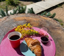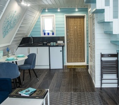 Мы жили в домике «осень», чистота и порядок. По запросу нам принесли кофеварку и это огромный плюс. Сразу же рассказали, куда можно пройти прогуляться.
