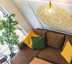Коттедж "Осень" выполнен в особенном стиле - осеннего сезона года в интерьере. Это идеальное место для отдыха душой и тела на вблизи озера Мадалаярви! На территории есть баня и банный чан,