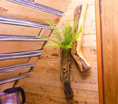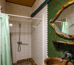 В тентах собственный санузел, где есть туалет и раковина. Душевая комната в глемпинге общая для данной категории номера.