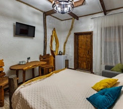 Понравилось: эко-парк находится в тихой маленькой деревне, хорошее место для отдыха вдали от городской суеты. На территории много классных резных Арт-объектов из дерева (очень классная фантазия у создателей). Номера оформлены необычно (кровать большая и удобная для сна). В номере был кондиционер, электрический радиатор, чайник, телевизор