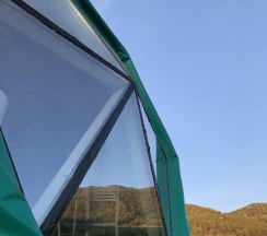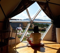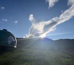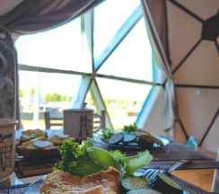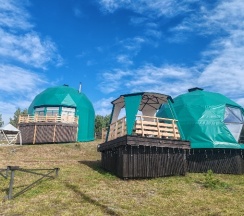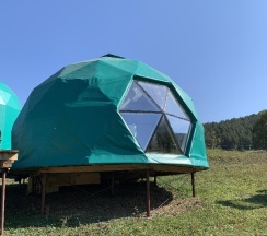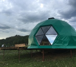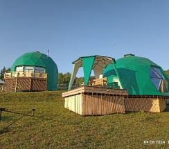 Отдыхали здесь в начале августа в куполе на двоих с доп местом для ребенка. Отличное место вдалеке от дороги и суеты! Тишина и покой,красивые виды. Одно из преимуществ базы - это немноголюдность)) на базе всего два купола - один большой двухэтажный и один одноэтажный на двоих. В домике есть всё для комфортного отдыха и проживания - холодильник, микроволновка, плита, чайник, кофеварка, вся посуда, телевизор с кабельным ТВ, wi-fi, Кондиционер! Душ, с/у.