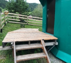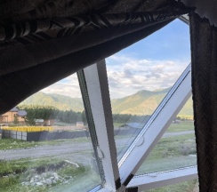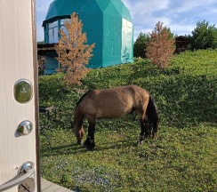Очень не обычный дом, просторный, даже с двумя маленькими детьми было комфортно. Есть всё необходимое, добродушные и отзывчивые владельцы. Место тихое, аромат разнотравья, сверчки, суслики, лошади, коровы вокруг. По пути к куполам перебегают дорогу зайцы.. релакс для души и тела! Без соседей, пьяных криков, музыки и прочего шума! Вид на горы не описуемый!