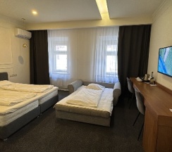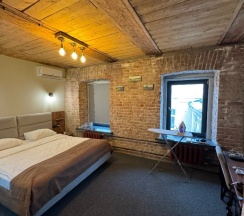 Снимали номер стандарт с мансардными окнами)Персонал очень приветливый, приехали рано утром, наш номер уже был готов, что очень порадовало, т.к ехали на поезде 10 часов и хотели отдохнуть)Сам номер просторный, светлый и очень чистый)В номере есть все необходимое, кровати удобные, белье чистое)В номере есть холодильник, чайник, телевизор, кондиционер, гладильная доска и даже утюг) Очень все понравилось)