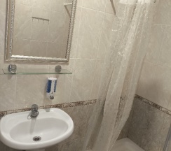 В номере холодильник, кондиционер, телевизор. По три полотенца и 1 халат на человека.