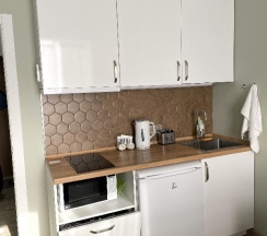Отличное место для того чтобы пожить в Сочи пару-тройку дней! Апартаменты удобные, все есть (чайник, микроволновка, столовые приборы и тд). Из нюансов - это именно аренда апартаментов, а не отель. Т.е. нужно быть готовым, что мусор выносить самим и посуду мыть самим! Но все эти нюансы перекрываются замечательным местоположением и просто восхитительными завтраками в кафе рядом (турецкое кафе). Также опционально можно кушать в японском кафе, но до него придется дойти (мы не ходили). Отдельно хочется отметить отношение к гостям, такое дорого стоит! За это отдельное спасибо!