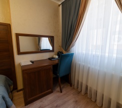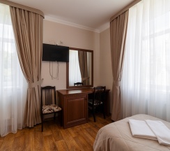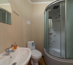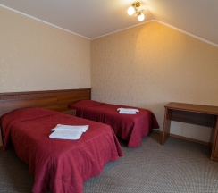 Теплые, уютные однокомнатные номера 20 кв.м. оснащены: двумя раздельными односпальными кроватями или одной двуспальной кроватью (уточняйте у менеджера при бронировании), зеркалом, столом, стульями, прикроватными тумбочками и холодильником. Санузел с душем, феном, комплектом банных полотенец на каждого. Комплексный завтрак включен в стоимость (не шведский стол). Кулер с горячей/холодной водой и гладильная доска с утюгом на 1ом этаже в каждом корпусе.