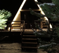 Отдыхали в начале октября в компании из 4-х человек. Арендовали небольшой домик с купелью на 2 дня. Домики снаружи красивые и стильные, с подсветкой. Внутри есть все самое необходимое для проживания. Очень понравилось качество кроватей, удалось выспаться, без каких-либо болей в спине и неудобств. Обычно в новом месте мне всегда спится плохо, но здесь я спал как дома.