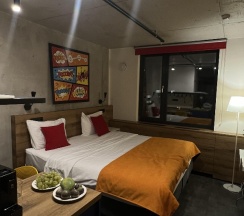 Очень милый, чистый отель. Просто, но стильно. Хорошая шумоизоляция. Приехали раньше .Пошли на встречу- заселили на 2,5 часа раньше. Гостеприимный персонал. Есть парковка для авто- рядом. Место для курения. Остались довольны. Кровати удобные. Свежий чистый отель. Полностью соответствует фото. Спасибо!