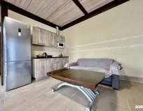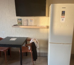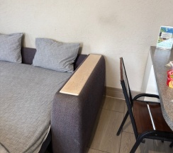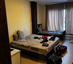Мне отель понравился. Для краткосрочного пребывания перед вылетом отличный вариант. Бронировала дневное пребывание. Цена как на сайте. Достался номер 3. Замок кодовый, в номере чисто, в самом номере 3 кровати: двухспальная и две односпальные, но в номере я была одна. В номере кухня, стол, телевизор, холодильник, шкаф, свой санузел с душем, есть туалетные принадлежности. Можно заказать еду в номер, цена очень приемлемая. Есть трансфер в аэропорт, цена примерно как в такси. Выспалась хорошо, шума не слышала. В номере стиральная машинка