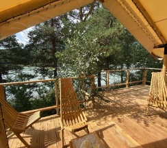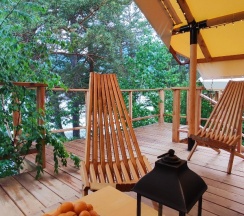 Сами домики- это сочетание дикого отдыха на природе со всем комфортом. В них так уютно, все необходимое есть, все продумано до мелочей, даже матрас с подогревом))) Отличная терраса с прекрасным видом даже со второй линии расположения (здесь все продумано - домики располагаются в шахматном порядке).