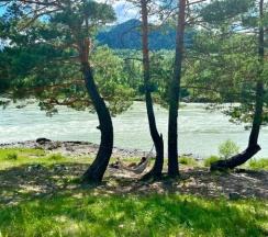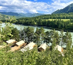 А место расположения - отдых от шума и цивилизации, спрятано за горой у реки Катунь.