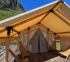 Отдыхал в глэмпинге 108 желаний с 30 июля по 02 августа. Поездка получилась спонтанной, но как оказалось, это был мой лучший на Горном Алтае. Идеальное место для тек, кто хочет побыть на едине с природой. Отель расположен на берегу реки. Несмотря на то, что он расположен всего в двух километрах от Чемала, ощущение такое, что ты находишься вдали от цивилизации, так - как тебя окружает только покой, шум реки и потрясающий вид на гору. Шатры очень уютные, есть все необходимое, при этом создается ощущение, чтл ты спишь в падатке на природе, шумит река и поют птички. Первый раз попробовал матрас с подогревом, тоже очень понравилось. А как приятно пить кофе на террасе и смотреть на реку! Словом, мне понравилось абсолютно все. Всем рекомендую отдохнуть в этом замечатетельном месте! Вернусь однозначно! Оксане и Анатолию огромное спасибо за отлично проведенное время!