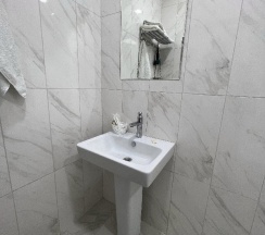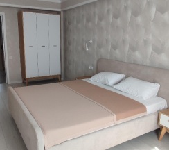 Отдыхали в ноябре 2023 года. Сняли номер для 2 человек. Фактически-однокомнатная квартира на последнем этаже: спальня с двумя кроватями и кухня с выходом на балкон. С балкона открывается вид на море. В номере есть все для удобства проживания. Белоснежное постельное белье и полотенца,которые меняли каждые 2 дня. Также есть одноразовые тапочки,зубные щётки,гели для душа, шампуни и мыло. Халатов,правда,не было,как обещано на сайте. В номере тепло. На кухне есть холодильник,микроволновка,стиральная машина,электрическая плитка с одной конфоркой, чайник и небольшой набор необходимой посуды- чашки, кружки,фужеры,вилки,ложки,ножи,кастрюли,сковородки. Также есть фен,гладильная доска и утюг. До центра минут 10 ходьбы. Тихо,спокойно. Рекомендую для проживания