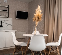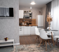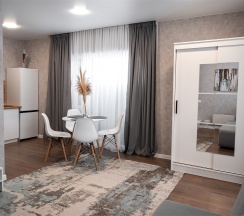 Отличные апартаменты! Останавливались на выходные в апреле, соотношение цена/качество 100%. Скинули заранее инструкции, все понятно, администратор на связи, номер чистый, приятно пахнет деревом, территория ухоженая, чистая, в домике есть все необходимое, белье белоснежное, как и полотенце, в общем - я в восторге! Мы были втроем, вполне комфортно себя чувствовали