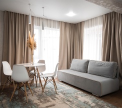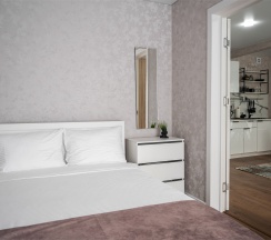 Всего 6 спальных мест - раскладной диван на 2 человек в кухне-гостиной и двуспальные кровати в каждой спальне, в одной из спален имеется детская кроватка и выход на просторную лоджию.