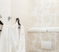 В номере есть: балкон, бар, кондиционер, чайник, халаты, гигиенические принадлежности