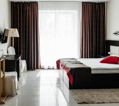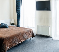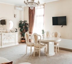 Понравилось хорошее расположение отеля в стороне от шумных дорог. Красивое здание с колоннами. Уютные номера, отзывчивый персонал. На первом этаже свой ресторан. Очень удобно, чисто и красиво.