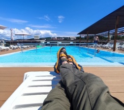 Прекрасный отель. Все чистенько и уютно. Персонал приветливый. На фоне застроенных домов и отелей друг на друге, бассейн на крыше - глоток воздуха и добавляет пространства. Смотришь не в стену во дворе, а на горы, город и море. А вечером на закат. Вернемся еще раз!
