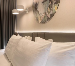 Для наших гостей 38 лаконичных дизайнерских номеров различных категорий, просторная гостиная для бизнес встреч и городское кафе УтроВечер. А на завтрак вас ждёт шведский стол и ароматный кофе.