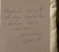 Очень хороший уровень отеля. От открытки, написанной от руки с подарком до питания в отеле.