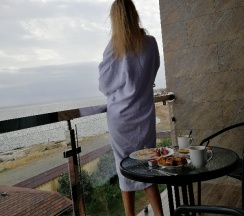 Были тут, как зашли, ребенок сразу сказал, мама, можно мы тут останемся) понравилось все! Уютный чистый номер, вид на море, тихо) в номере есть и чайник и холодильник, много полотенец. И внимание! Даже гладильная доска с утюгом в номере! Такое бывает вообще почти никогда. При въезде, в три часа дня, ребенка покормили, хотя кафе у них открыто только на завтраки. Единственное надеялись поплавать в вашем красивом бассейне, думали подогреваемый, но нет, вода холодная. В целом впечатления очень даже положительные, спасибо! Надеемся что еще приедем к вам ❤️