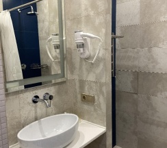 Отель с хорошим , современным ремонтом, сантехникой, с теплым полом в номере. Администратор вежливая, компетентная, клиентоориентированная. В номере есть холодильник, телевизор. Нам был приготовлен небольшой комплимент при заселении. Завтрак очень кстати достойный, большие и вкусные порции; также мы посещали спа, бассейн там комфортной температуры. Хаммам, сауна,душ все новое и чистое, есть телевизор, душ, фен, стол, вкусный чай.