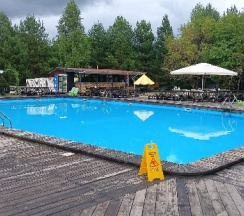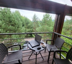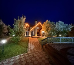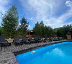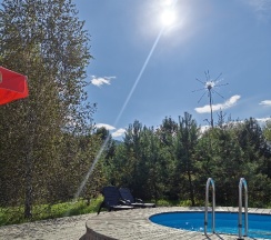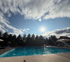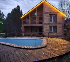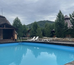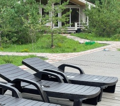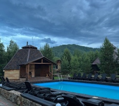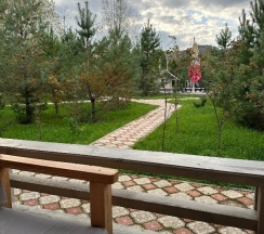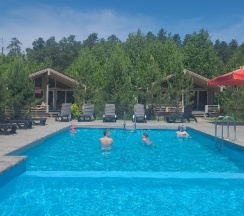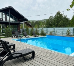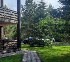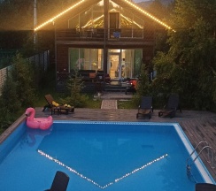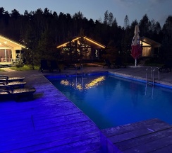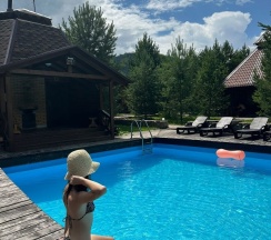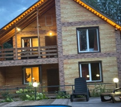 Отдыхали семьей 2 дня!Дом брали с 4мя спальнями.Природа,шикарный дом со всеми удобствами,практически обособленная территория от соседних домиков-все круто.Те,кто хотят тишины и спокойствия-все это получат,те же,кто наоборот хочет тусы-и этим людям будет в кайф,они никому не помешают и ни чей покой не нарушат.,Пользовались услугами бани,хамама ,уличного бассейна-ну все здорово.Дрова дают-это для тех.кто будет пользоваться мангалом.Про питание что могу сказать-нам сразу сказали ,что питание в стоимость не входит ,это как бы подарок.Поэтому мы на него особо не рассчитывали и ходили только на завтрак.Скромно очень,официанты слегка не успевают,но те кто ищут плюсы во всем-их однозначно найдут.Большой уличный бассейн достаточно теплый,чистый,но без музыки,думаю,надо это исправить☝️