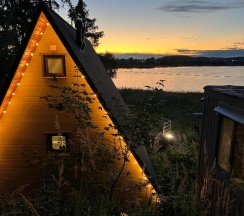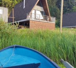 Ну что-то нам не зашло. Ставлю четверку только за потрясающие виды с балкончика. Жили в домике художника. Всё вроде бы хорошо в этом домике: и панорамные окна, и кухонный уголок со всем необходимым, и просторная душевая, и спальное место на втором этаже. При этом всё как-то "не докручено" что ли. С одной стороны навороченная раковина с имитацией необработанного камня, с другой некуда полотенца повесить возле душа. С одной стороны навороченный чайник, красный холодильник, с другой - замызганная сковородка, грязная губка для посуды, к которой страшно прикоснуться. Ну и самое главное: нет кондиционера. Ночью чуть не померли. На втором этаже- атас. Есть дверь прям у кровати, на которой сетка, ее можно открыть и видеть вас будут все проходящие и проезжающие, поскольку она выходит аккурат на дорогу. Мы завесили дверь покрывалом, которое у нас было для пляжа. Но тогда воздух не проходит. Кровать жутко неудобная, матрас черезчур мягкий. Полотенца рыжие. Ну, наверно, если не получается отбеливать, проще какие-то цветные полотенца давать. Ну и камеры смотрящие тебе прямо в окно, тоже "вишенка на торте". Территории нет, вернее она какая-то вся неухоженная, набросано все везде, как-будто приехал к другу на дачу, у которого неделю была вечеринка. Мангал один на два домика, что тоже наверно не всегда удобно. Из плюсов: можно арендовать лодку и снасти. Рыбалка чудная.Щука довольно большая поймалась через 20 минут. Ребята, облагородьте территорию, проведите кондиционер, повесьте шторы и уже будет получше. Место и вид - офигенный. Фото закатов прилагаю