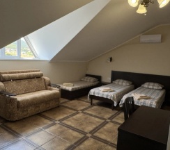 Понравилось: Долго определялись с местом отдыха, искали цена - качество, остановились на данном гостевом доме. Гостевой дом превзошел наши ожидания, размещенные на сайте фотографии не раскрывают всю картину. При заезде также порадовал "комплимент" от Никаса и Фатимы в виде прохладного тонизирующего напитка (на выбор) и чурчхела детям :) . Отдыхали вчетвером с двумя детьми на мансардном этаже. Номер просторный. С общего балкона виден Новороссийск, горы. Порадовало, что на мансардном этаже имеется мини кухня, мойка, холодильник, микроволновка чайник и т.д., для ленивых которым лень спускаться на кухню (за 6 дней на основной кухне мы были 2 раза). По рекомендациям хозяев были постоянными гостями местной столовой Византия, не очень далеко, но пройтись придётся, цены демократичные, пробовали практически все, в среднем у нас выходило 1 000 р. на четверых. (советую не покупать на набережной "жареное мороженное", минус один день отдыха :( . На заднем дворе бассейн. Бассейн чистый, несмотря на плохую погоду вода была всегда теплой, а мы попали именно под такую, там же хорошая душевая и туалет, лежаки, две небольшие зоны отдыха где можно спрятаться от солнца и контролировать детей, открытый мангал, небольшая хорошая детская площадка, парковка, все гармонично, чисто, ничего лишнего и приятно. Практически всё в шаговой доступности, Старый парк, рынок, набережная. В целом, если вы не хотите вечером слышать кутеж Кабардинки, то это то самое место, тихо, спокойно. Машина была припаркована радом с отелем, единственный кто ее тронул это местные улитки, а их тут много :).