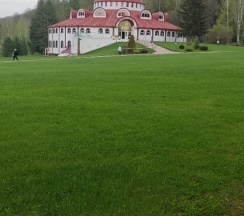 Большая красивая, ухоженная территория. Свой сосновый бор. Источники. С коляской погулять идеальное место