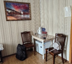 В номере чисто, уютно. Тихо, спокойно. Вежливый персонал идущий на встречу клиенту. Минус в том что в 4ом номере одна розетка которая находится под столом у входа и занята телевизором и чайником. Рядом с кроватями розеток нет.