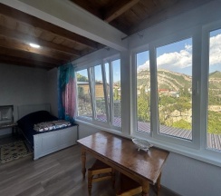 Так получилось что приехали уже поздно в Гуниб, поужинали в ресторане Небо в горах и начали искать жилье. В интернете первое что понравилось Высота - треугольные двухэтажные домики. Изначально не устроила цена, но потом мне перезвонили и сделали скидку. Мы заехали домик очень понравился новый, чистенький, все работает, банные принадлежности, тапочки .. все выдали. Детям очень понравился второй этаж. Прекрасный вид из окна