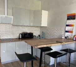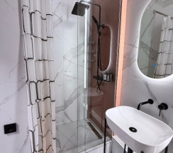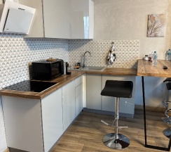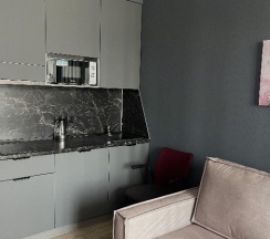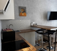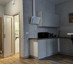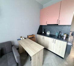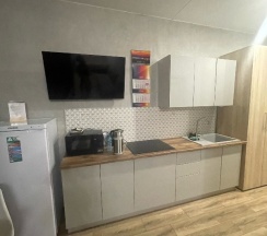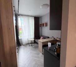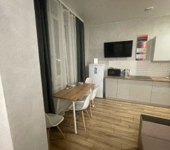 Апартаменты понравились, быстро заселились, в номере чисто, в кухонном уголке есть все необходимое, даже кофе машина и в ванне просторно и чисто, есть стиральная машина. С парковкой повезло , было место. Внизу очень хорошее кофе.