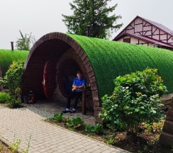 Очень понравилось! Уютное местечко, необычное! Хорошие домики хобитов. Классная банька и чан на улице. Очень красиво оформлены олеички, очень много цветов!!!