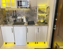 Понравилось: Отдельный вход со стороны двора. Всё новое и чистое, удобная кровать, есть чай, кофе, бутилированная вода, на мини- кухне есть микроволновка, холодильник, плита, электрический чайник, посуда. Дизайн помещения продуман, чувствуется хороший вкус хозяйки.