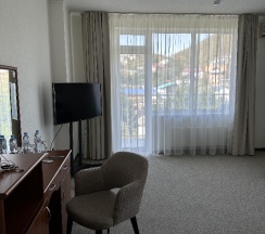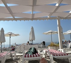 Отличное место для отдыха, и единственное в Ольгинке где отдыхает глаз от наследия лихих 90- х. Номера просторные , убираются каждый день с заменой полотенец , ванных принадлежностей и питьевой воды. Территория опрятная, есть бассейн,свой пляж . Особо хочу отменить ресторан на территории- это лучшее что я видел из общепита в округе и не только.