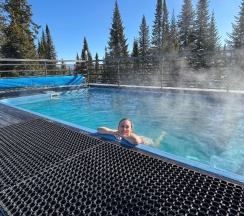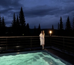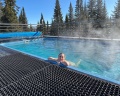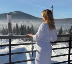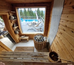 Мы были в бане с горячим бассейном! Потрясающий вид на горы с трассами, шикарные ели вокруг, в бане чисто, уютно, есть все самое необходимое, вежливый персонал! Вкусный травяной чай с медом, конфетки, печенье и колонка Алиса! Вода в бассейне 38c - шикарное место! Одно из ярких впечатлений в Шерегеше! Дети и взрослые были в восторге!