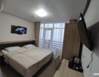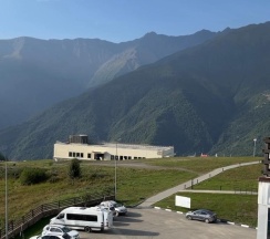 1 сентября останавливались в Гостинице, в рамках джип тура по горной Чечне из Краснодара. Расположение великолепное, виды потрясающие. Горная Чечня — это место уединения, место мыслей, место души и добра, связи с космосом, место, которое сложно забыть. И посреди гор находиться островок цивилизации-гостиница Эдельвейс. В номерах чисто и уютно. Есть всё необходимое. Единственное, не понятно, что было с телевизором. Вообще не разобрались с техникой. Нас это не расстроило, так как закат на огромной общей террасе был великолепен. Территория большая и облагороженная. Парковка так же большая. Ужин и завтрак был отличный. Всё свежее и вкусное. Один маленький нюанс огорчил. На ресепшене и в кафе не было вообще кофе. Гиды рассказали, что, основное коренное население пьет чай. Вся группа из 15 человек, ходили как "зомби". Чая было много, подавали с чабрецом, вишней. Отличное место для уединения.