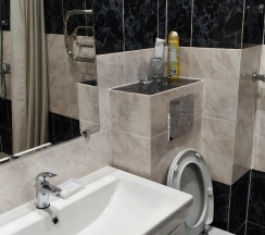 А вот владельцу нужно решить вопрос с бойлером и горячей водой при малом заселении. Не должна в нормальной гостинице вода холодная стекать. А гость не должен ждать появления горячей воды для того, чтобы помыться.