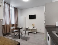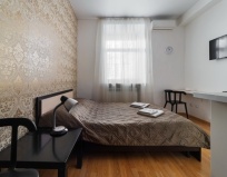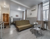 -: слышно звуки из коридора, и ремонт немного «бабушкин», но для приятной цены и расположения в центре города этот минус оправдывается