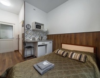 Были в городе проездом на выходных, заселились на ночь. В номере чисто и красиво, есть всё необходимое: полотенце, мыло/шампунь, кондиционер, чайник, микроволновка, маленький холодильник. Нам было важно иметь свою душевую вместо общей - здесь это тоже есть. Само место удобное, здесь тихо как в спальной части, но при этом до центра можно пешком дойти. Спасибо, приедем ещё!