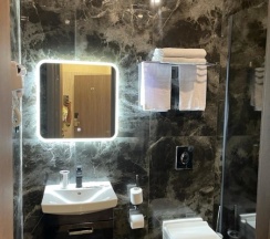 Двухместный номер площадью 20,5 м 2 . В номере: двуспальная или две полутороспальные кровати, диван, прикроватные тумбочки, стул, пуф, телевизор, чайник, микроволновка, холодильник, кондиционер, чайный столик В ванной: душевая кабина, раковина, унитаз, фен, мыло, шампунь, гель для душа, комплект из 3-х полотенец.
