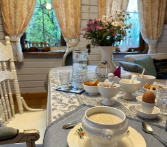 У нас были потрясающие завтраки, великолепный ужин, невероятно вкусные грибочки от местных жителей. Сейчас как картинки перед глазами закаты, рассветы и туман в полях.