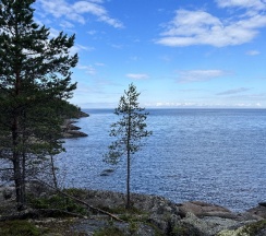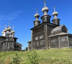 Утром после завтрака ходили на экскурсию с Ольгой Федоровной, поднялись на Спортивную гору, на которой открывается панорамный вид на Онежский полуостров.