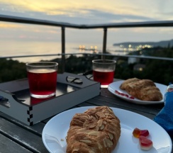 Отзыв благодарности) Приехали в это место спонтанно, потому что запланировали отдых в другом отеле и там жутко не понравилось. Тут очень радушный хозяин, невероятно внимательный и отзывчивый человек! Очень вкусные и красивые завтраки, панорамные окна с видом на море (все, на минуточку!) и потрясающие закаты каждый день. Непередоваемые ощущения, когда ты сидишь в горячей бочке Фурако и солнце падает в море на твоих глазах!) спасибо большое, ноль замечаний, ваше место - ценная для меня находка! От всей души советую это место!