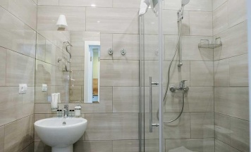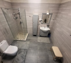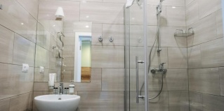 Двухместная комната Оборудована двухспальной кроватью, кондиционером, LED телевизором. В ванной просторная душевая кабинка, фены, зубные наборы, шампуни, гели для душа, махровые халаты, чайная станция, холодильник, микроволновка.