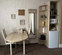 Очень хорошие номера. Уютно, чисто, красиво. Качественная мебель, интерьер. Телевизор, кондиционер. Чай, кофе, конфетки 🍬. Даже мультиварка есть.