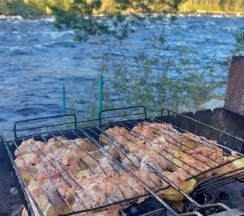 🍢Пожарили шашлык, как здорово, что все для этого предоставляется бесплатно. Устроили ужин в беседке с видом на реку. Какой визуальный кайф всё там делать с видом на реку. Просто мой рай.
