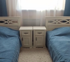 Вежливый персонал, уютная комната, удобные полутораспальные кровати. Есть полотенца, шампуни, гели для душа, зубные щетки. Есть посуда( тарелки, кружки, ложки), электрический чайник. Большой телевизор.